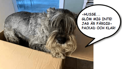 Så kom dagen när flytten skulle ske. Husbilen parkerades en bit bort hos grannen och hundarna installerades